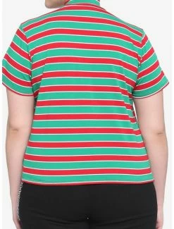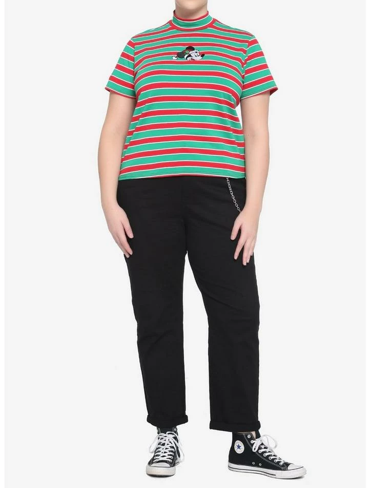 Your holiday wardrobe just got a whole lot merrier! Ring in the season Disney-style with this mock neck tee, featuring bold red and green stripes throughout and an embroidered Santa Mickey Mouse patch at the chest.