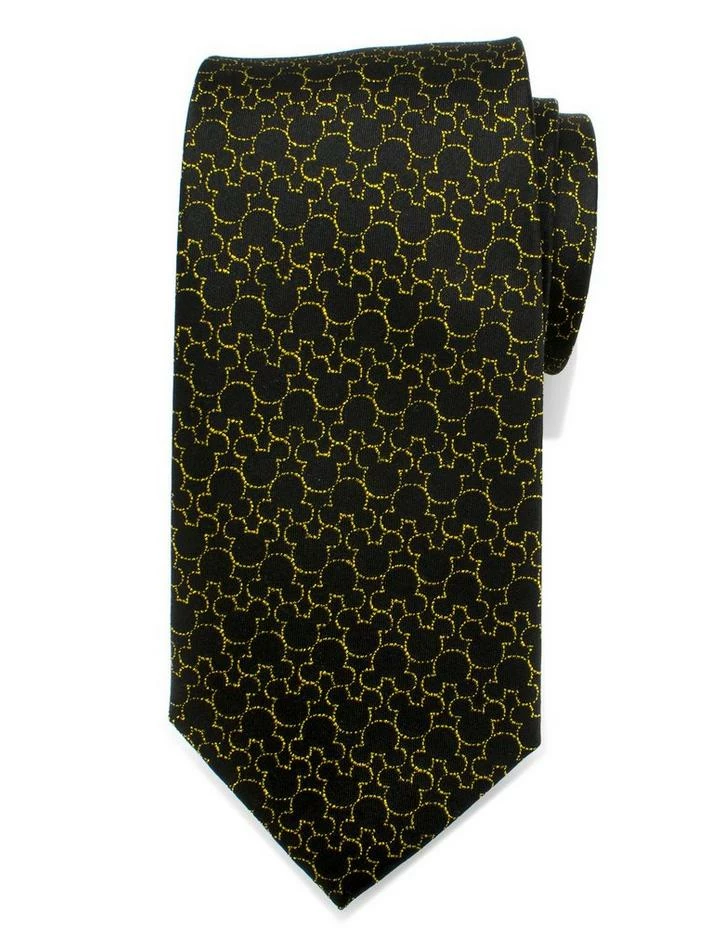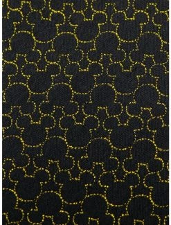 Capture the spirit of Mickey’s 90th birthday with this 100% silk tie. Featuring a compact Mickey Mouse silhouette in fine gold thread, this bold black tie will have everyone smiling. Officially licensed by Disney. Approximately 59″ x 3″, 100% silk.