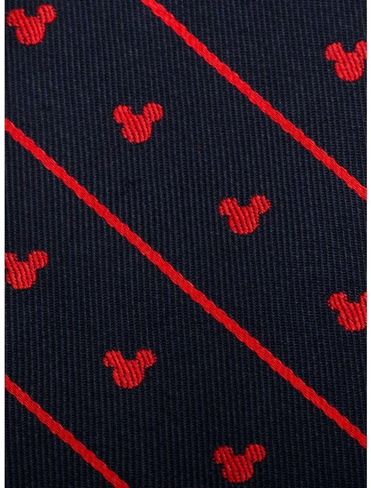 Show off your Mickey Mouse love with this navy pinstripe tie. The red stripes and Mickey heads pop out in front of the navy background. Approximately 59″ x 3″, 100% silk. Officially licensed by Disney.