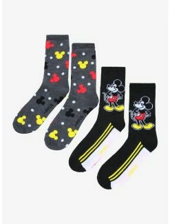Step into some Disney magic with every step you take in this set of crew socks! Mickey Mouse is featured on one pair in a confident pose, and the other pair has an allover toss of multicolored Mickey Mouse heads.