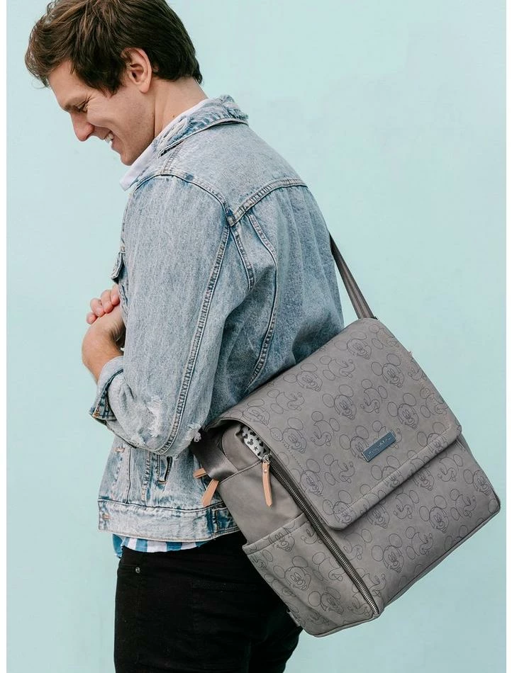 Celebrate the magic of Disney’s Mickey Mouse in the latest collaboration with Disney. This Boxy Backpack is outfitted in a cheerful microprint that spells out love for Mickey Mouse fans, and perfectly coordinates with the other bags and accessories in the Love Mickey Mouse collection.Β With every detail at the ready, the spacious and well-appointed Boxy Backpack cleverly features a built-in changing station, lots of organizational interior and exterior pockets, and offers multiple carrying options for maximum versatility. Includes a removable zippered pouch in coordinating microprint.Β Spacious interior with 5 pockets and a key clip,Β 2 exterior bottle pockets, magnetic front flap closure, plus snaps for added security.