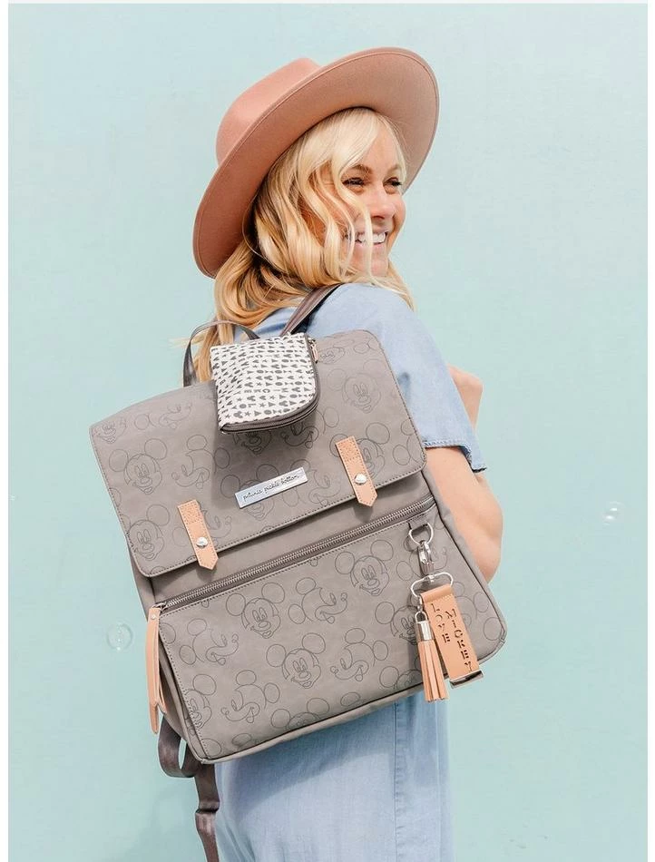 Celebrate the magic of Disney’s Mickey Mouse in the latest collaboration with Disney. The Meta Backpack is outfitted in a cheerful microprint that spells out love for Mickey Mouse fans, and perfectly coordinates with the other bags and accessories in the Love Mickey Mouse collection. Features a front zippered pocket with PEVA antimicrobial lining for snacks, a felt-lined back pocket for protection and quick access to cell phone, an insulated pocket,Β 2 interior mesh pockets, trolley sleeve for easy travels, padded backpack straps, and includes wipes case and washable changing pad.